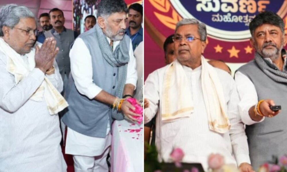 Karnataka Chief Minister Siddaramaiah sought to project unity within the Congress party by sharing photographs with Deputy Chief Minister DK Shivakumar during a government event in...