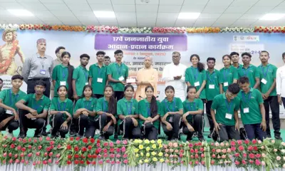 Chief Minister Yogi Adityanath of Uttar Pradesh engaged with young representatives from five Indian states at the 17th Tribal Youth Exchange Program in Lucknow on October...