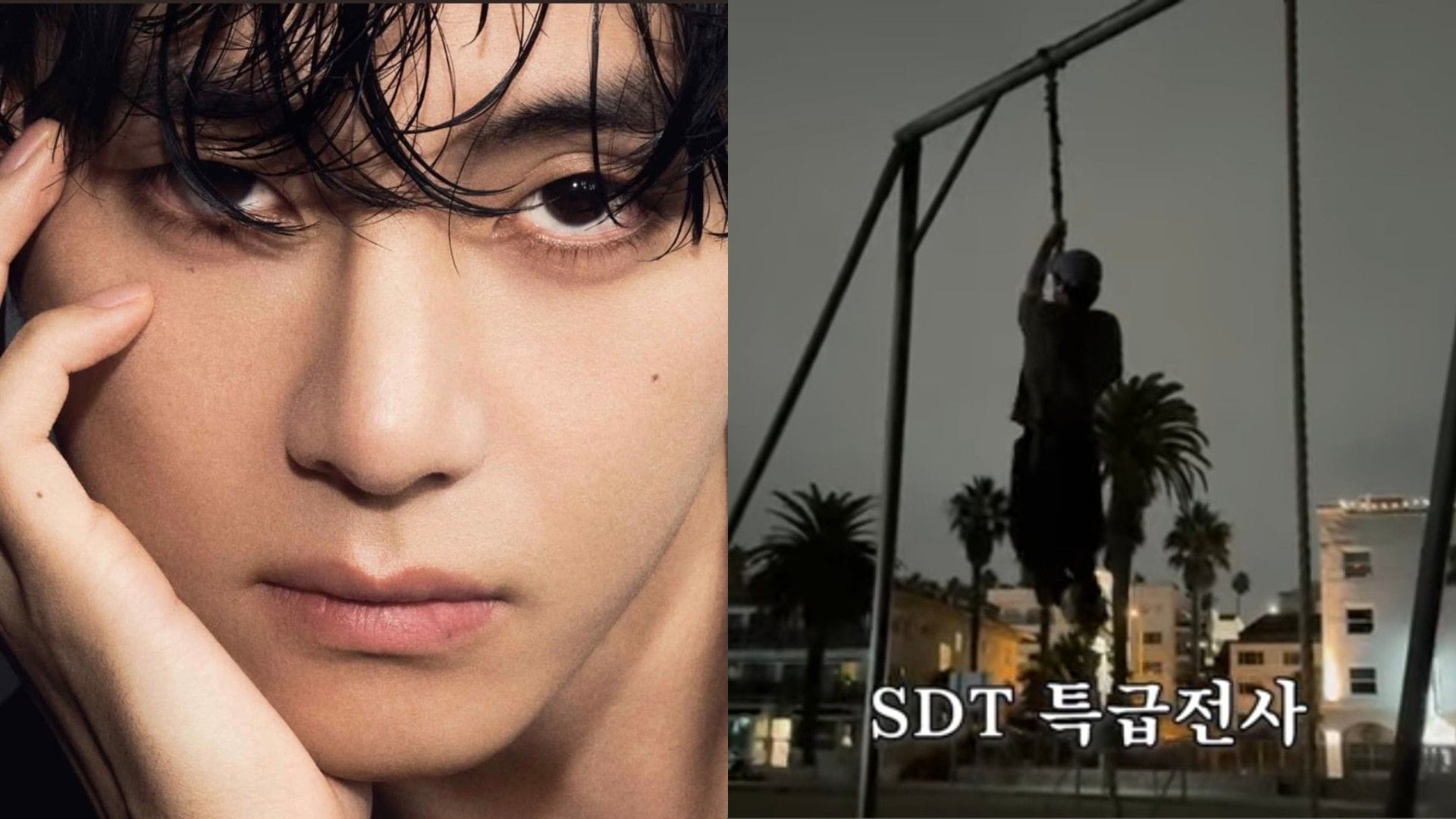 The vlog opens with Taehyung enjoying breakfast before transitioning to a workout session. A notable segment features him jogging along the beach with his staff, where he comes across a rope set up nearby. Without hesitation, he climbs the rope with impressive speed, a moment that quickly went viral across social media platforms. Fans were quick to draw parallels between his athleticism and his training in the Special Duty Team (SDT) of the Republic of Korea Army Military Police, where he served during his mandatory military service.